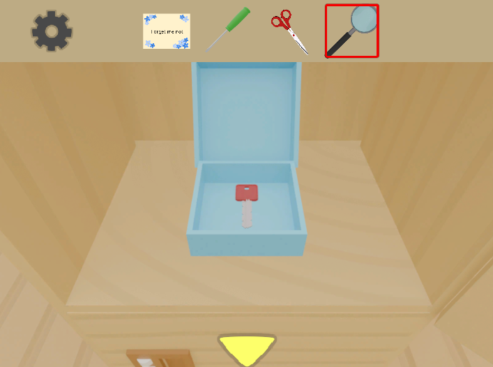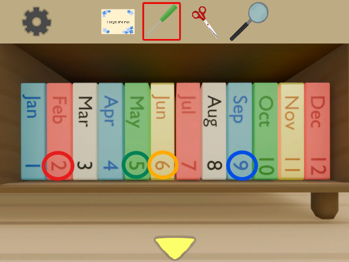 カラーボックス上段を開けて「赤いカギ」を入手!