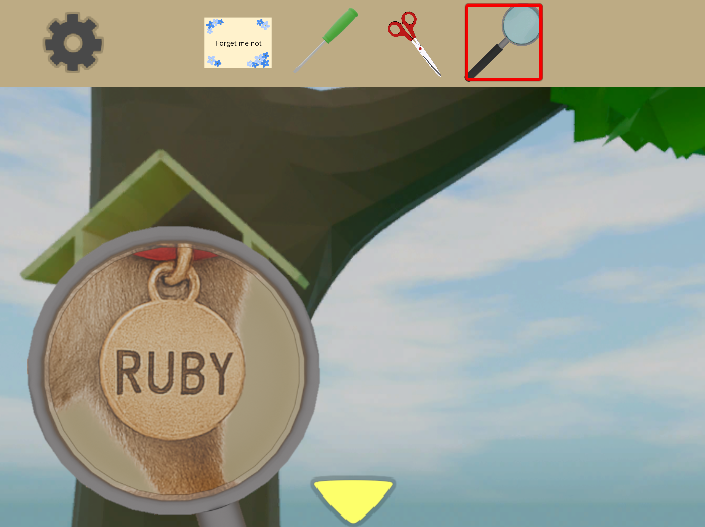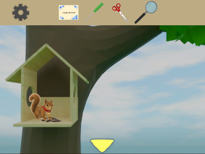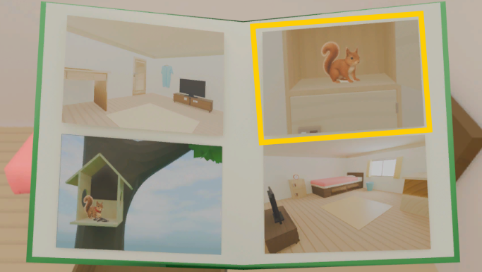 - 窓を開けて外をクリック。木の枝に「小さな家」がある。