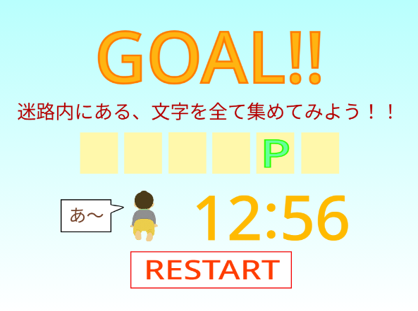 クリアタイムによってゴール画面の「ゆーちゃん」のイラストとコメントが変化します。